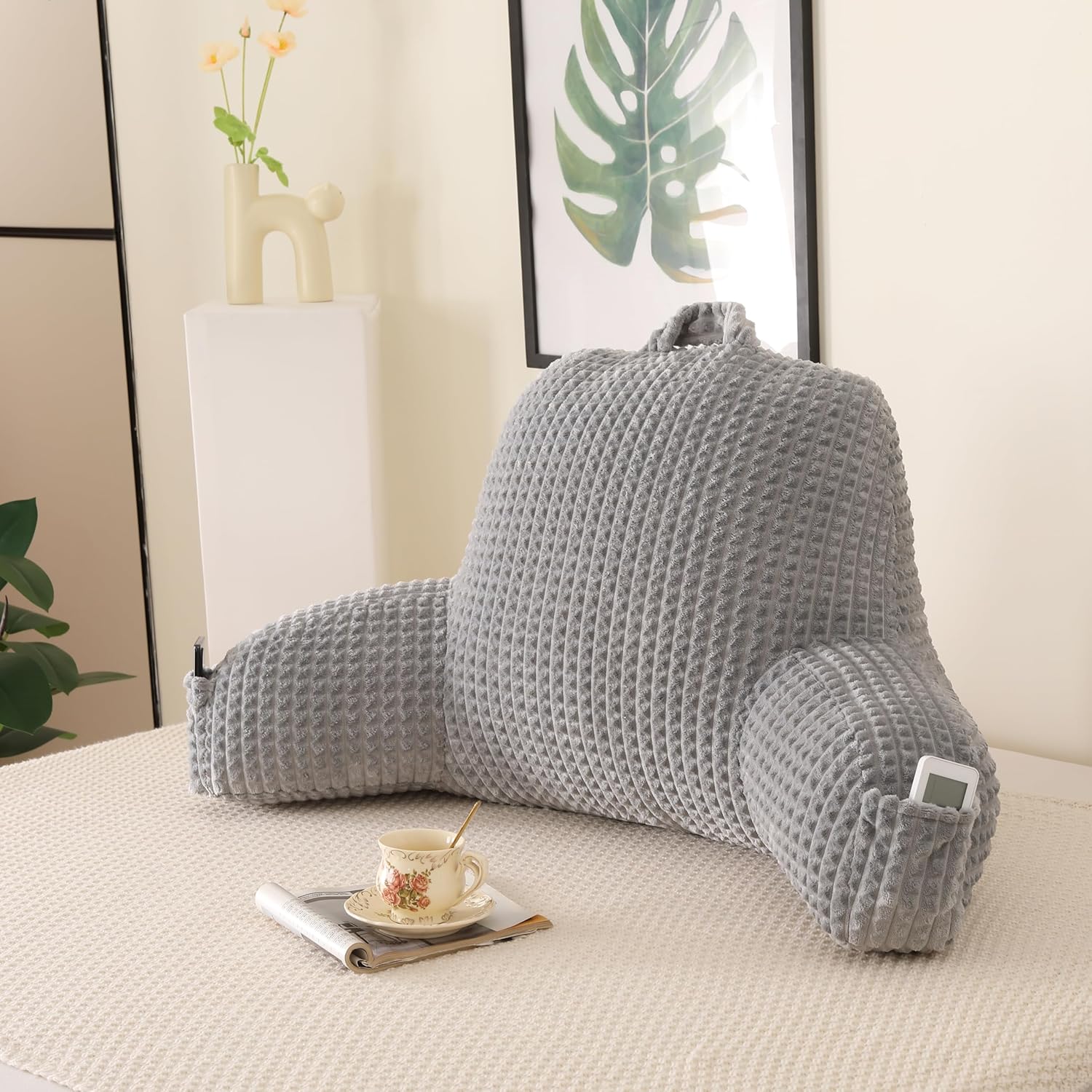 Reading Pillow for Sitting in Bed Durable Flannel, Large Backrest Reading Pillow with Polypropylene Cotton (Grey Flannel, Standard(17inch))#ad