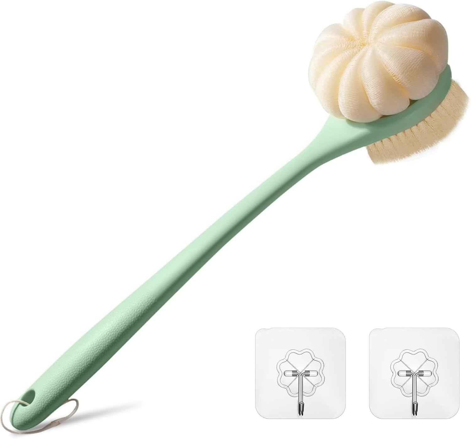 Back Scrubber for Shower, 15.7" Loofah with Handle, Back Shower Brush with Bristles and Loofah, Dry Brushing Body Brush for Cleanse Back and Hard to Reach Areas with Curved Long Handle#ad