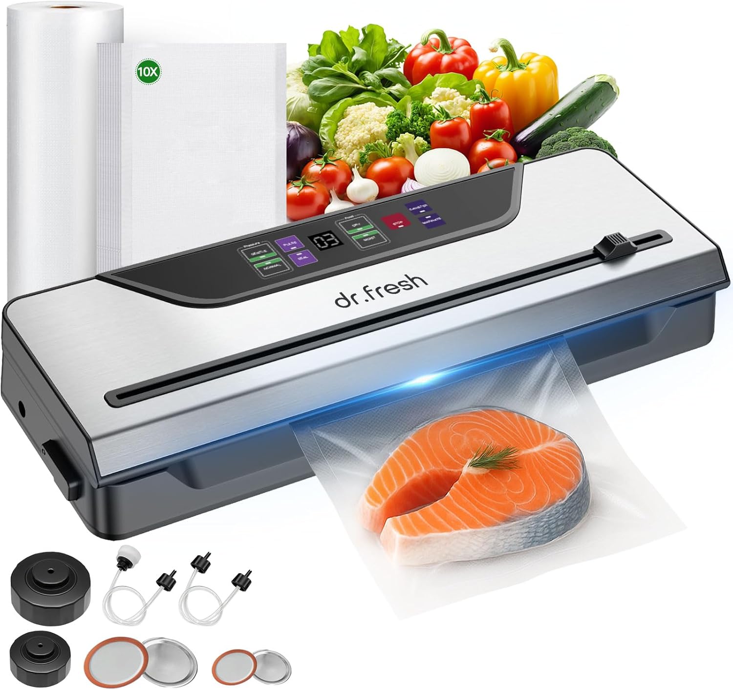 Vacuum Sealer for Food, 10-in-1 Food Vacuum Sealer Machine for Freshness Storage, 90kpa Powerful Food Sealer with External Sliding Blade, Digital Timer, 1 Bag Rolls & 10 Pre-cut Bags, Accessory Hose#ad