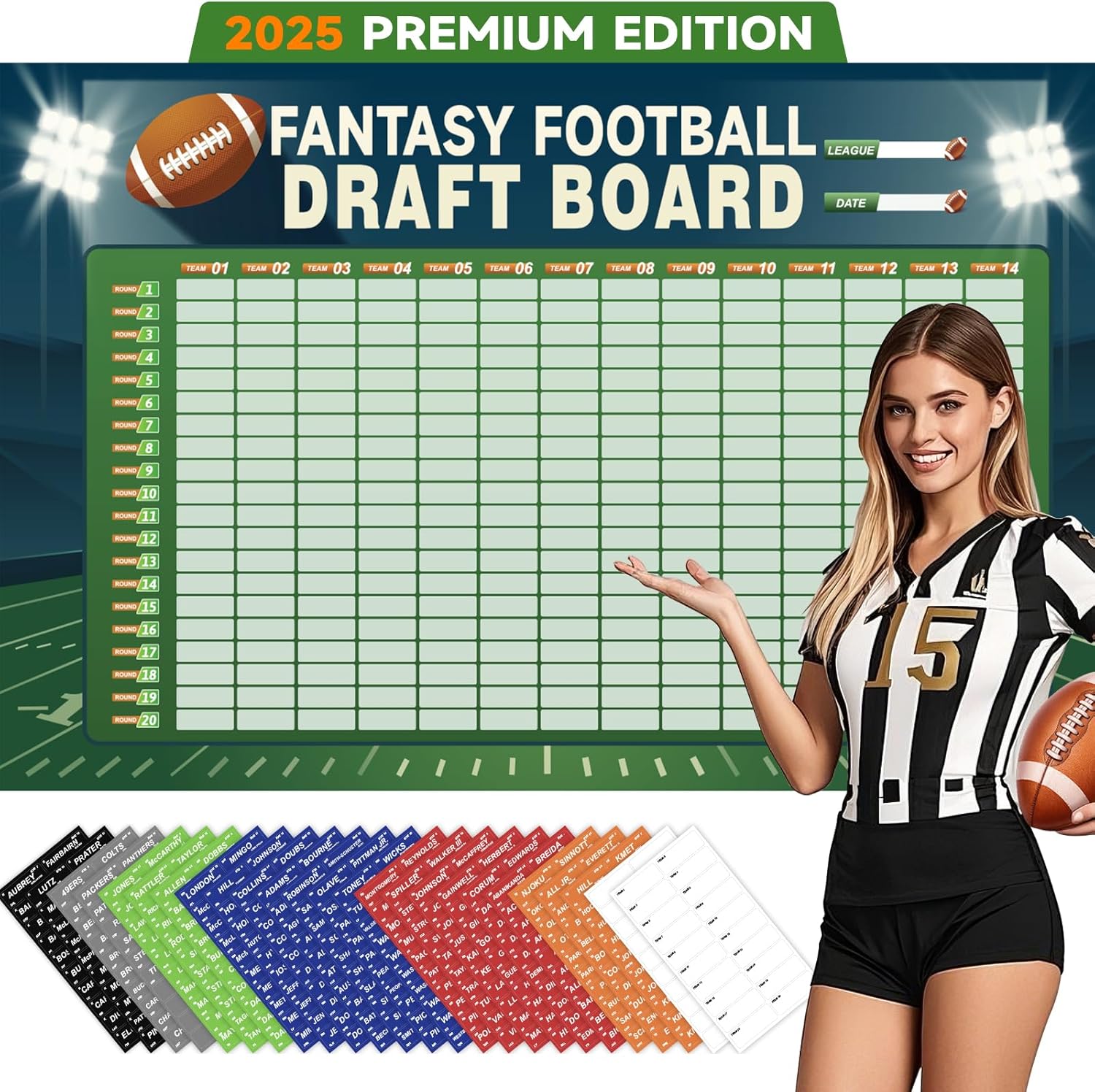 XL Fantasy Football Draft Board,6 x 4 Feet -Up to 14 Teams & 500+ Player Stickers & Draft Guide,120 LB Material.#ad